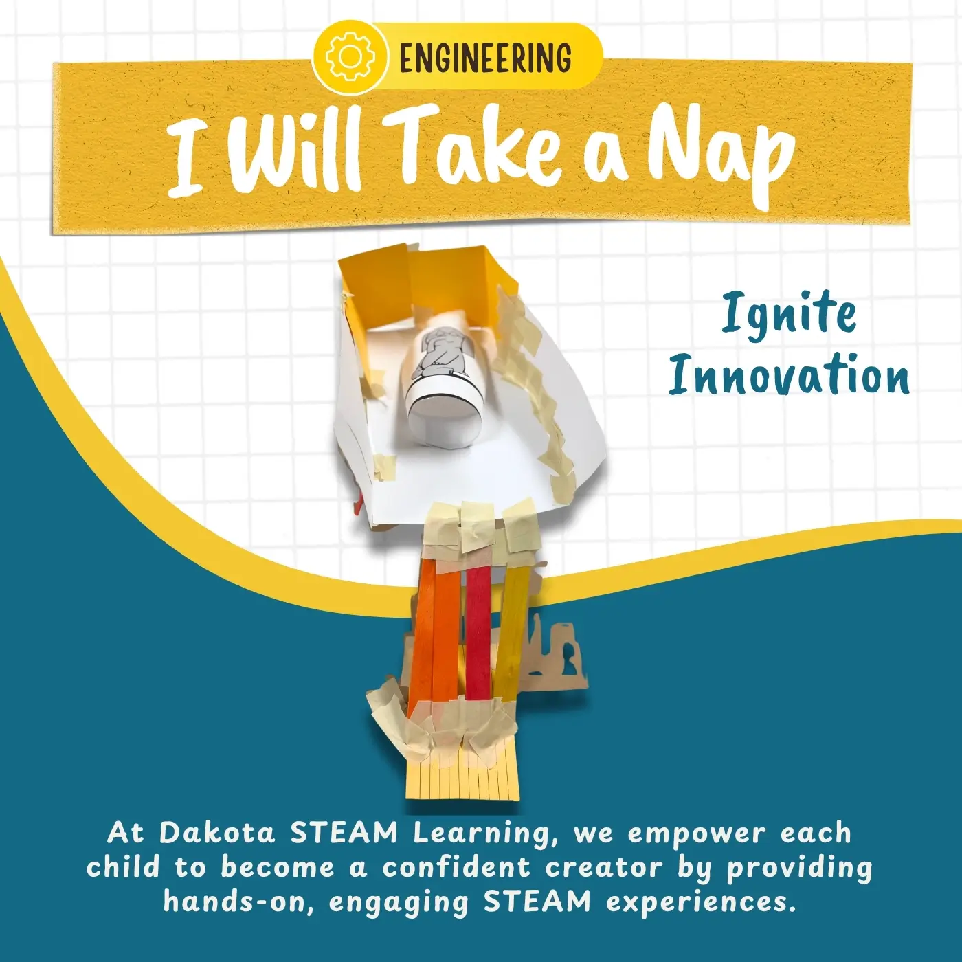 Inspired by Mo Willems’ “I Will Take a Nap!,” students take on the challenge of designing a cozy, sturdy bed for Gerald the elephant. After exploring fundamental engineering concepts like posts and beams, learners apply their creativity and building skills to construct a bed that can support Gerald’s nap time in comfort and style. Students love bringing the story to life through hands-on engineering, making this lesson both fun and unforgettable!