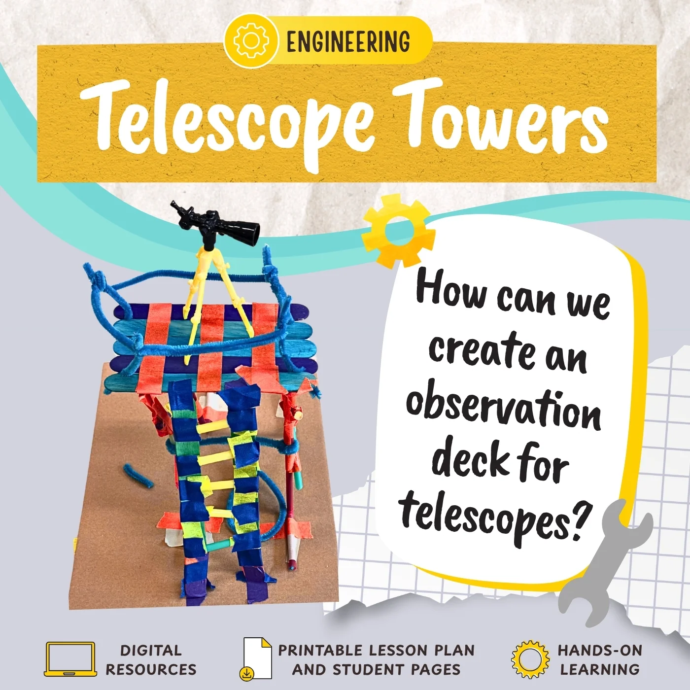 Invite students to reach for the stars as they explore celestial bodies and the technology that helps us study them. In this engineering challenge, learners examine how telescopes work and why observation decks are designed for stability and accessibility. Using this knowledge, students create a tall, sturdy observation deck that safely supports a telescope model and allows astronomers to access it. The hands-on building and testing process fosters perseverance, creativity, and structural problem-solving while connecting space science to real-world engineering design.